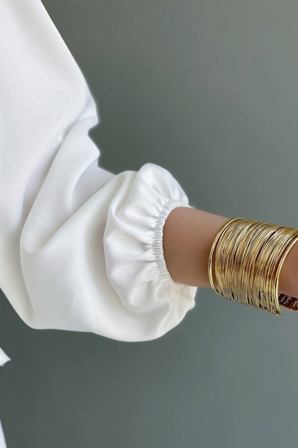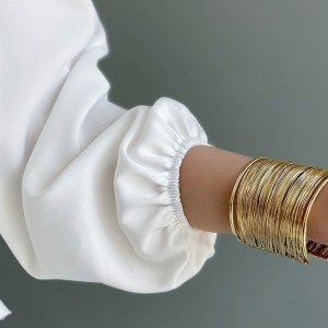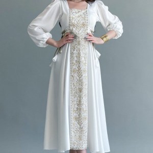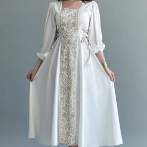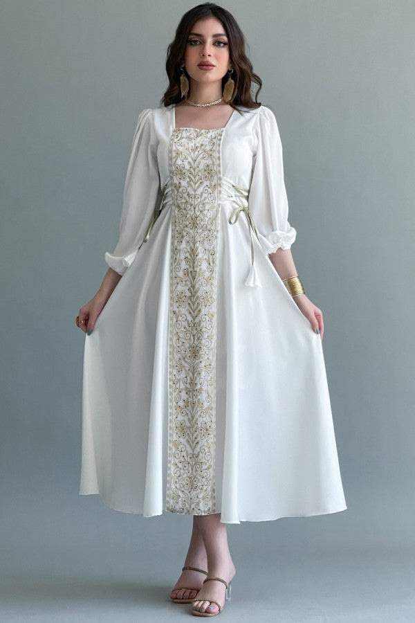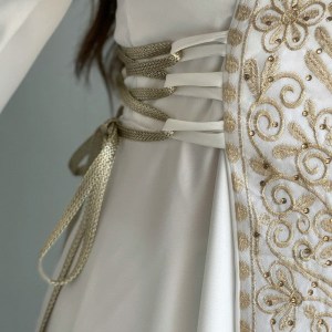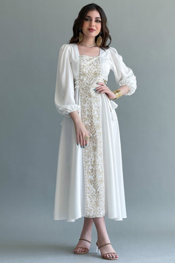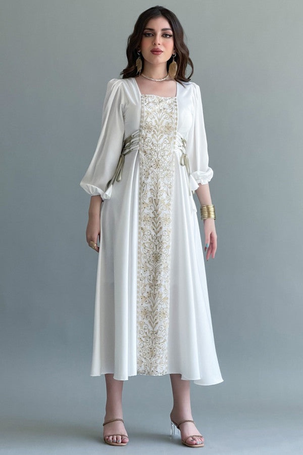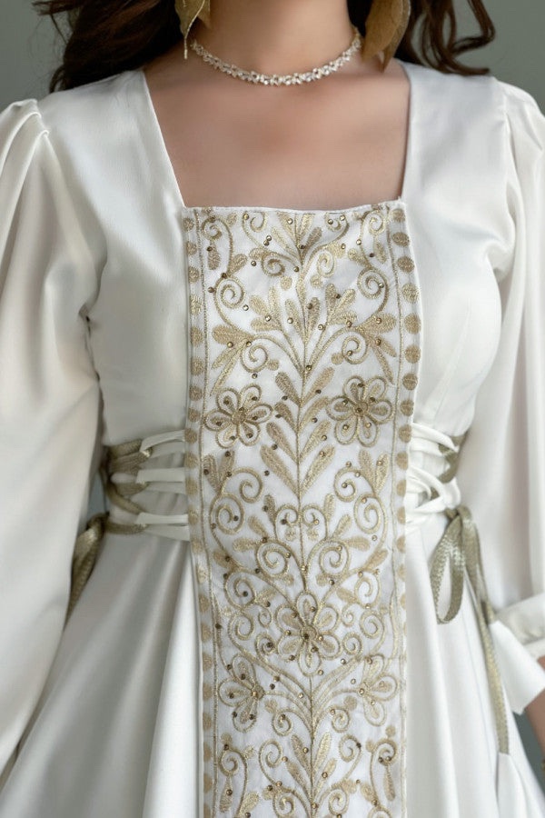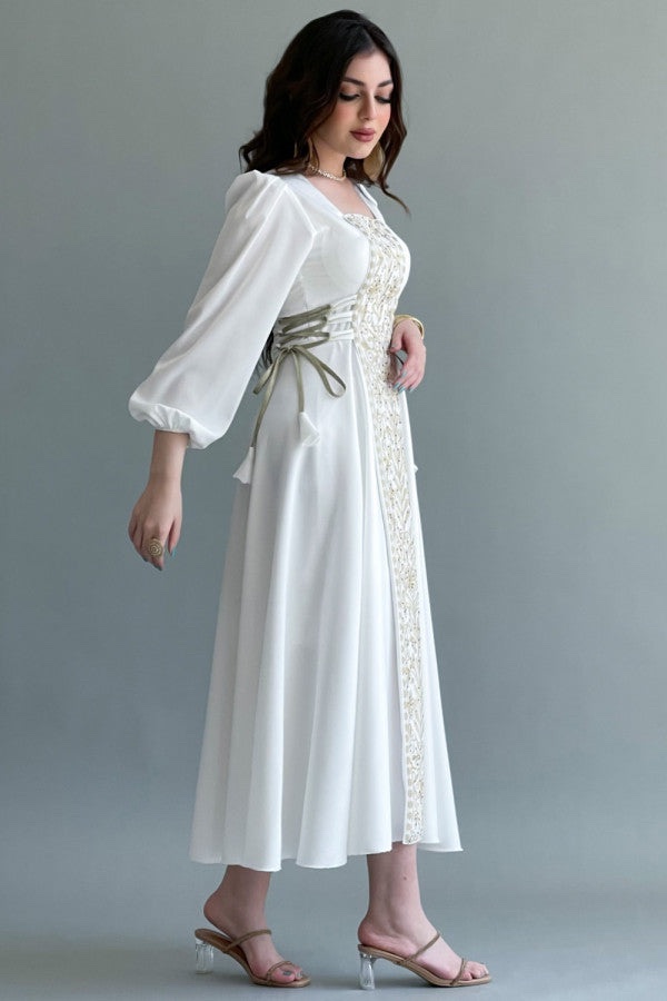 جلابية لون ابيض مع ذهبي . القماش حرير