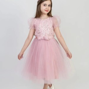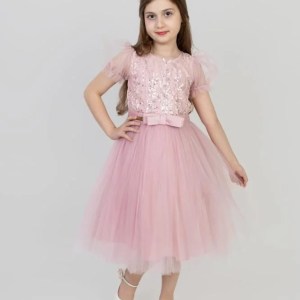 فستان بنأتي شبك لونين وردي و تيفاني