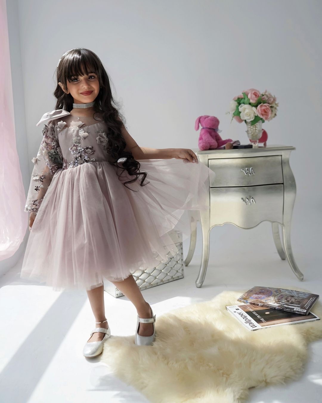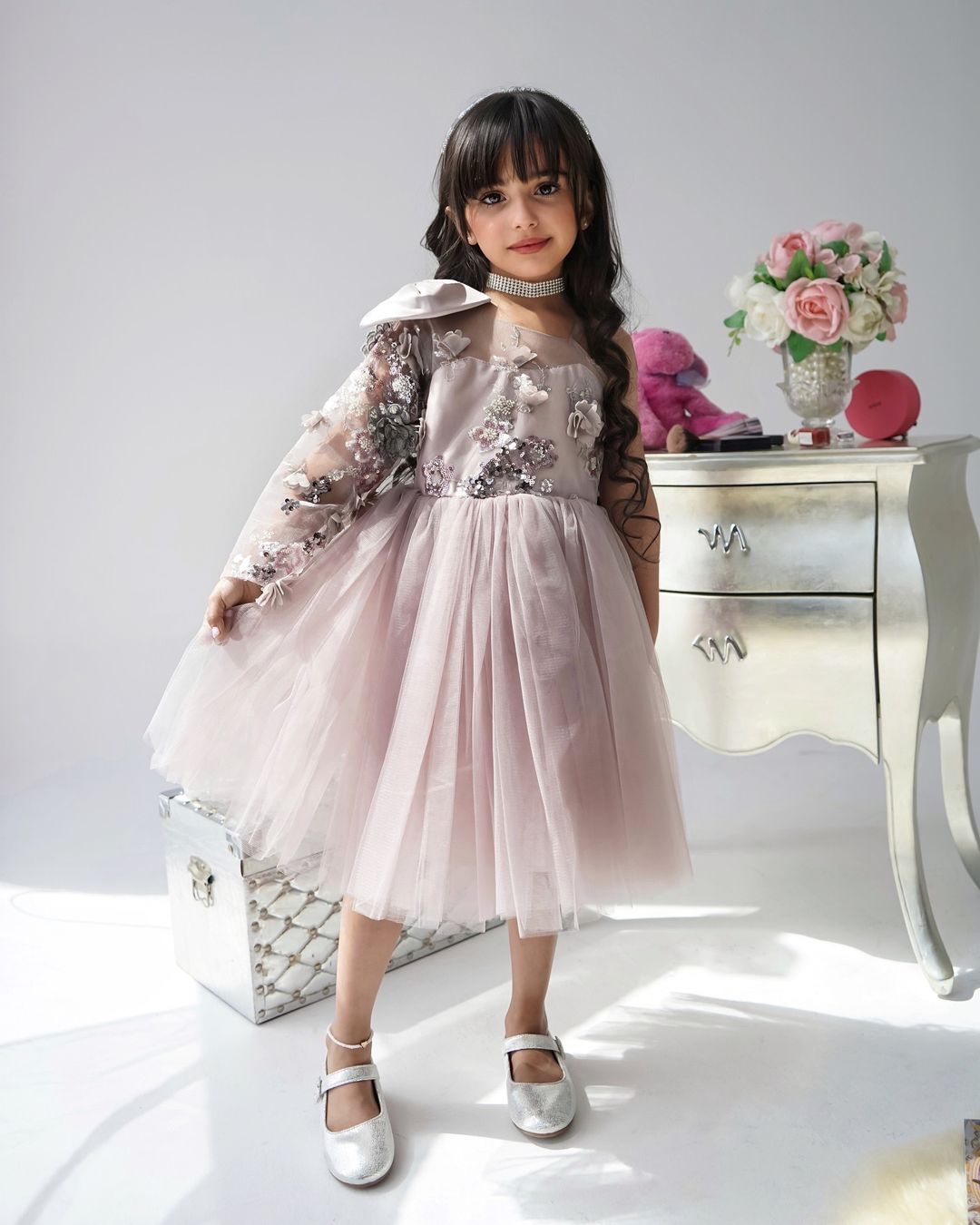 فستان بنأتي لون لحمي يد واحده مورد