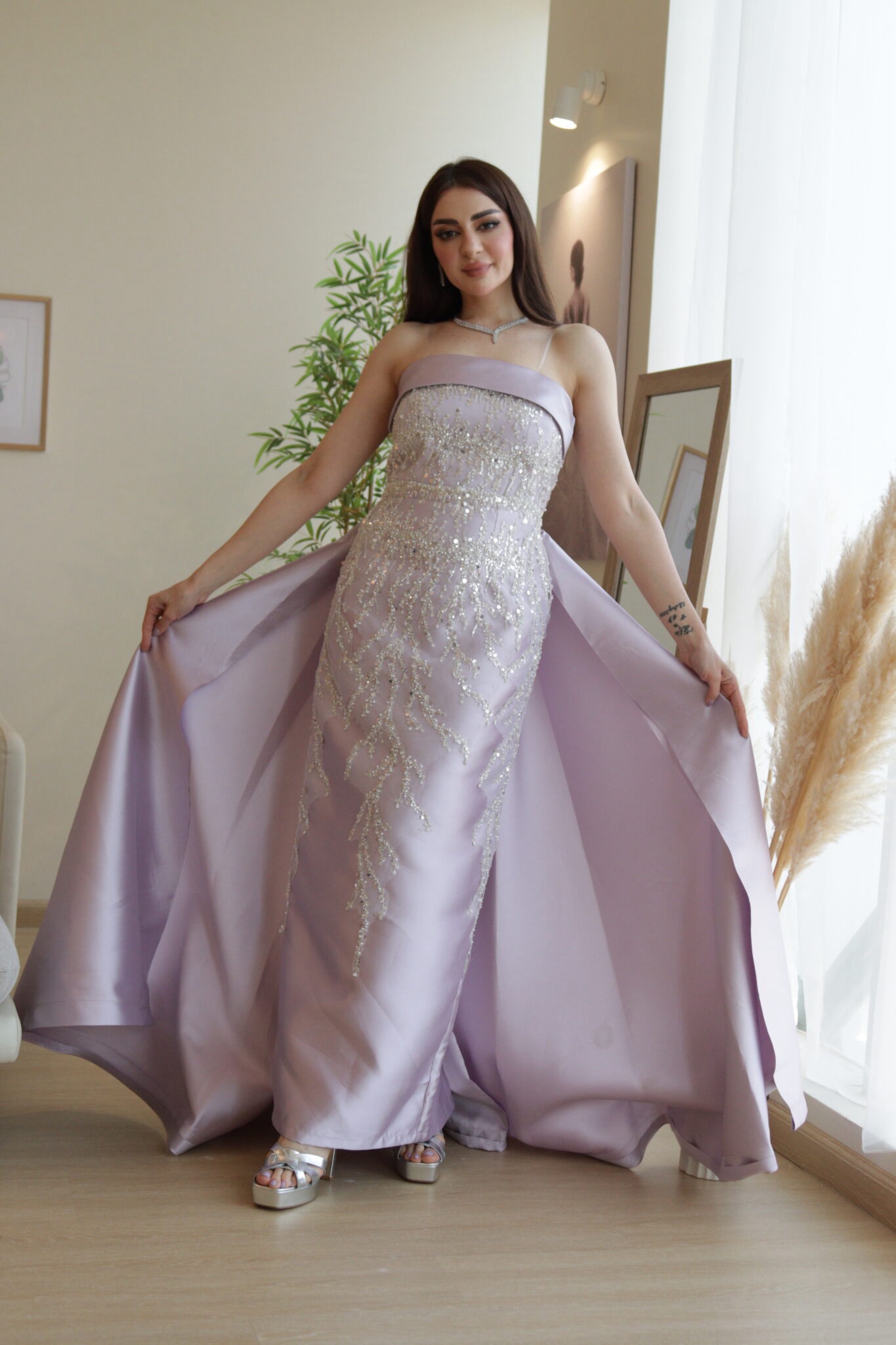 فستان نسائي سهره لون بنفسجي ذيل