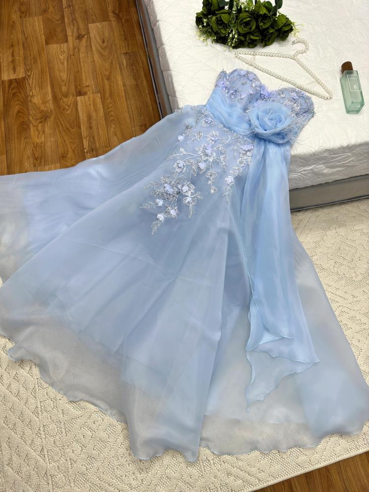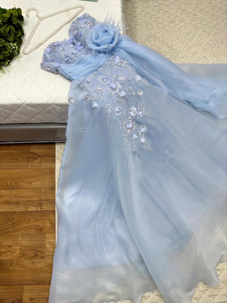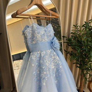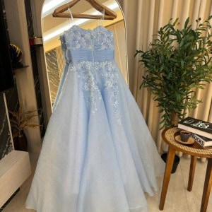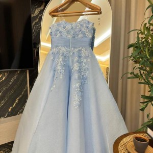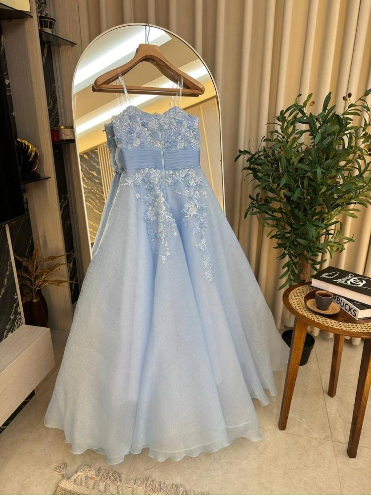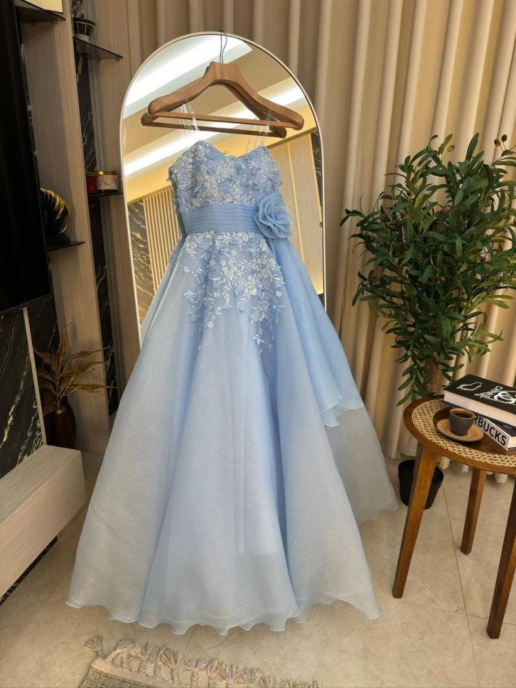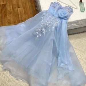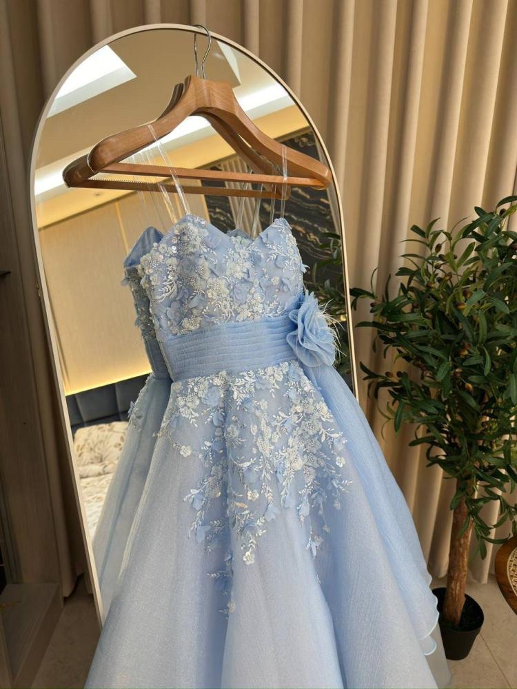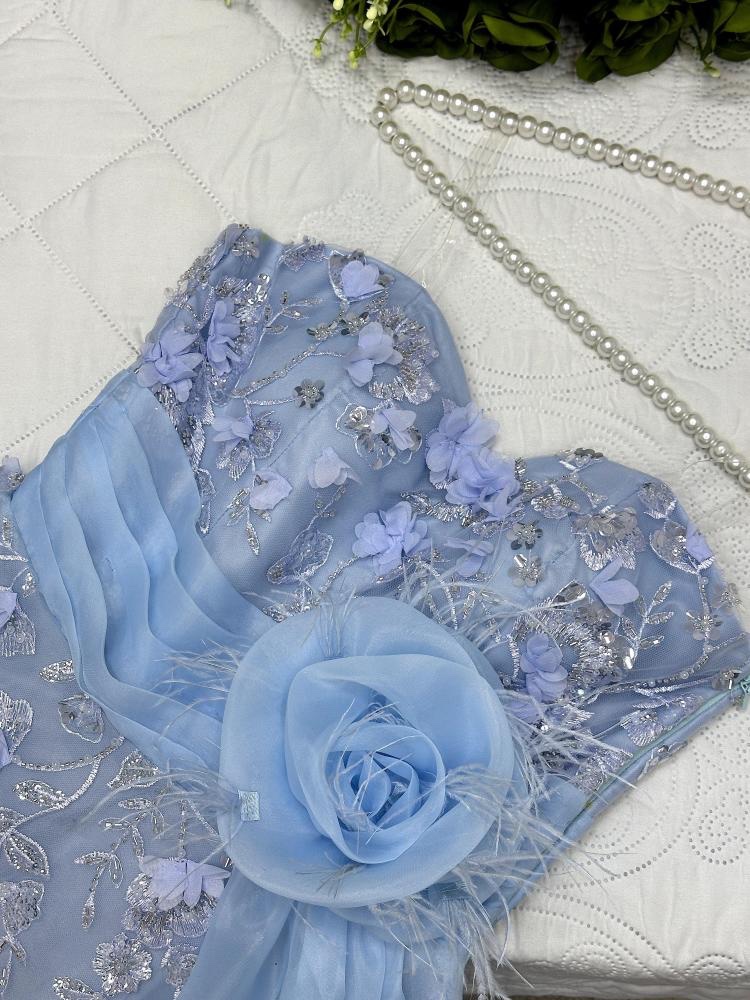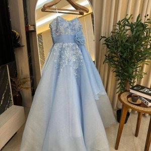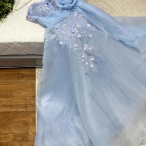 فستان نسائي سهره لون بحري مطرز بورود
